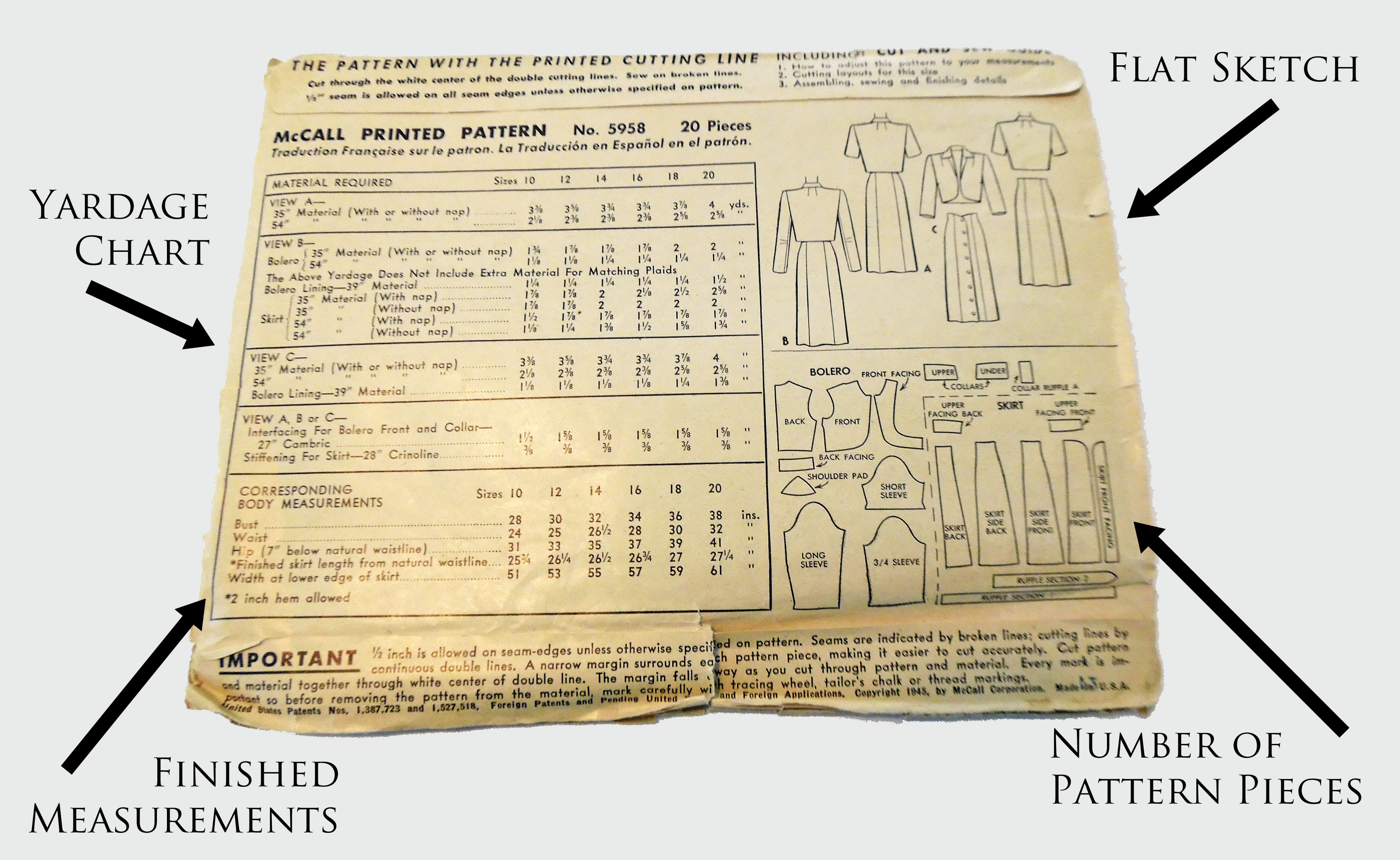 Basics Reading A Pattern Envelope Yesterday S Thimble